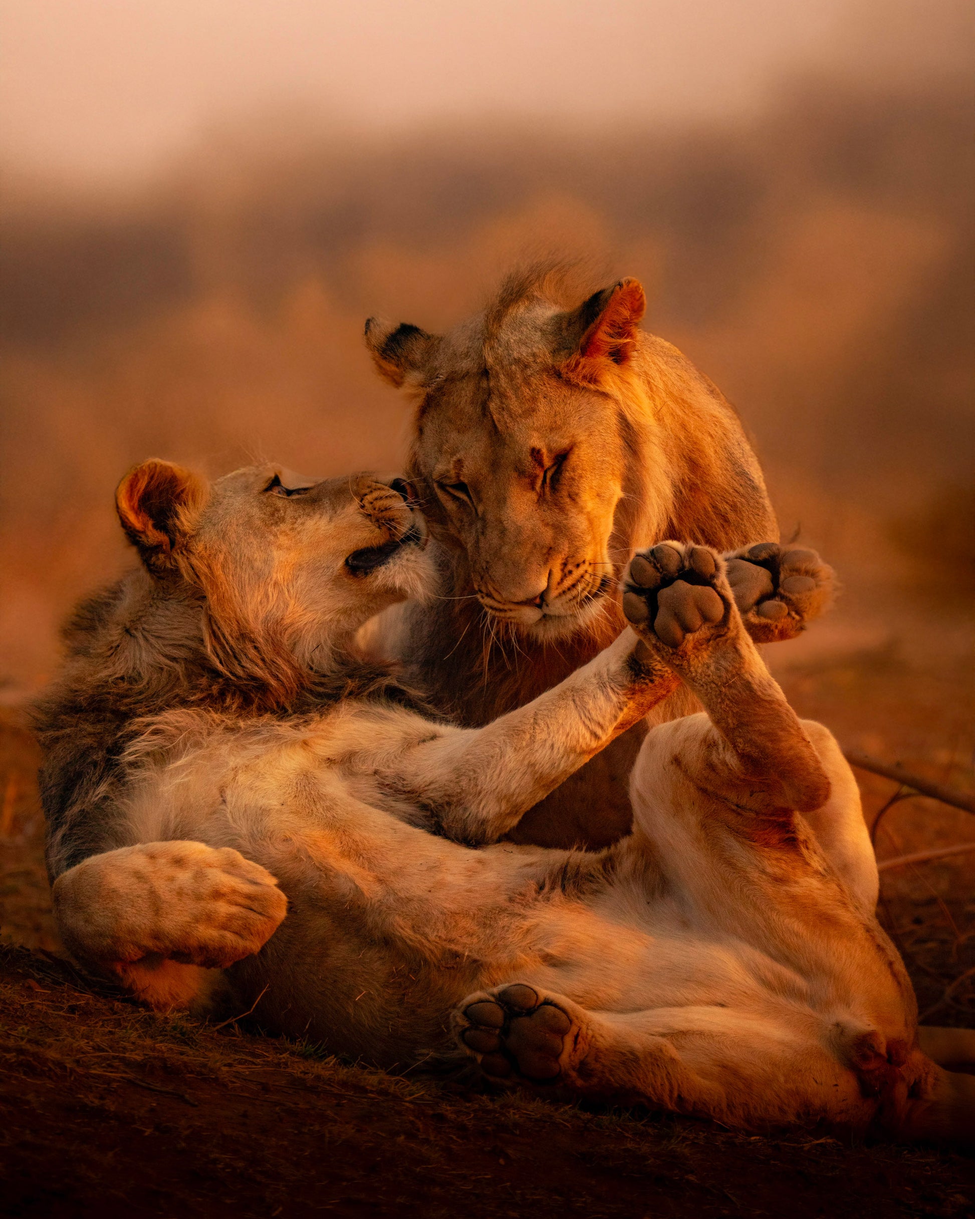 This image captures the raw bond between siblings in the animal kingdom—a mix of loyalty, tension, and love. Timing was everything; the way they touched, lunged, and paused told a deeper story than just a play fight. It was a fleeting window into the emotional world of lions, often misunderstood as only fierce and dominant. This photograph is a celebration of their connection, and a reminder of the vulnerability that lies beneath the strength.