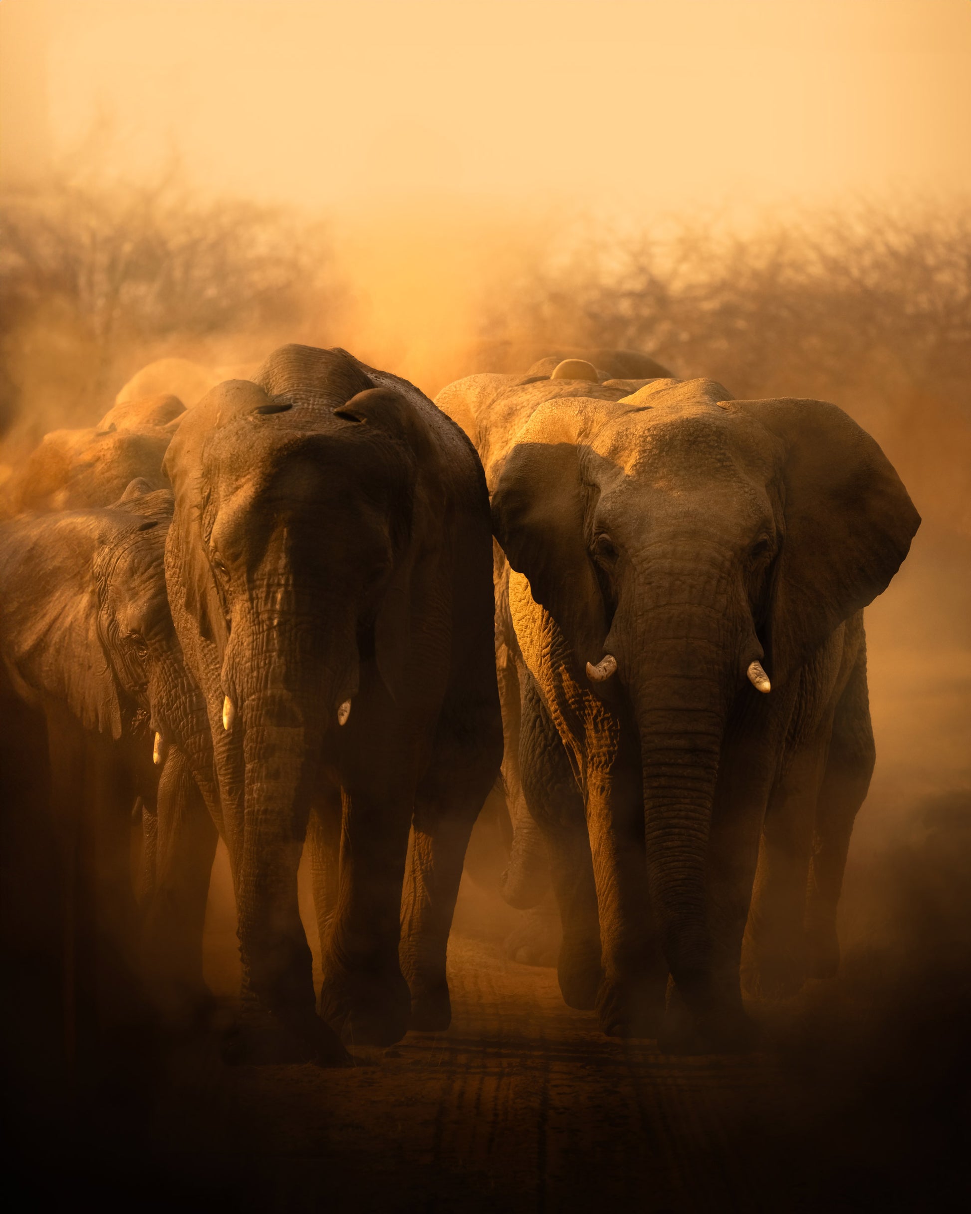 Elephants are more than just icons of the wild—they are deeply social, intelligent, and emotionally rich beings. Photographing them is always humbling, but this moment felt almost spiritual. The matriarch’s leadership, the synchronized movement of the herd, and the golden veil of dust created an image that speaks of legacy, strength, and unity. This photograph is a tribute to the timeless elegance of elephants, and the ancestral wisdom they carry through the African wilderness.