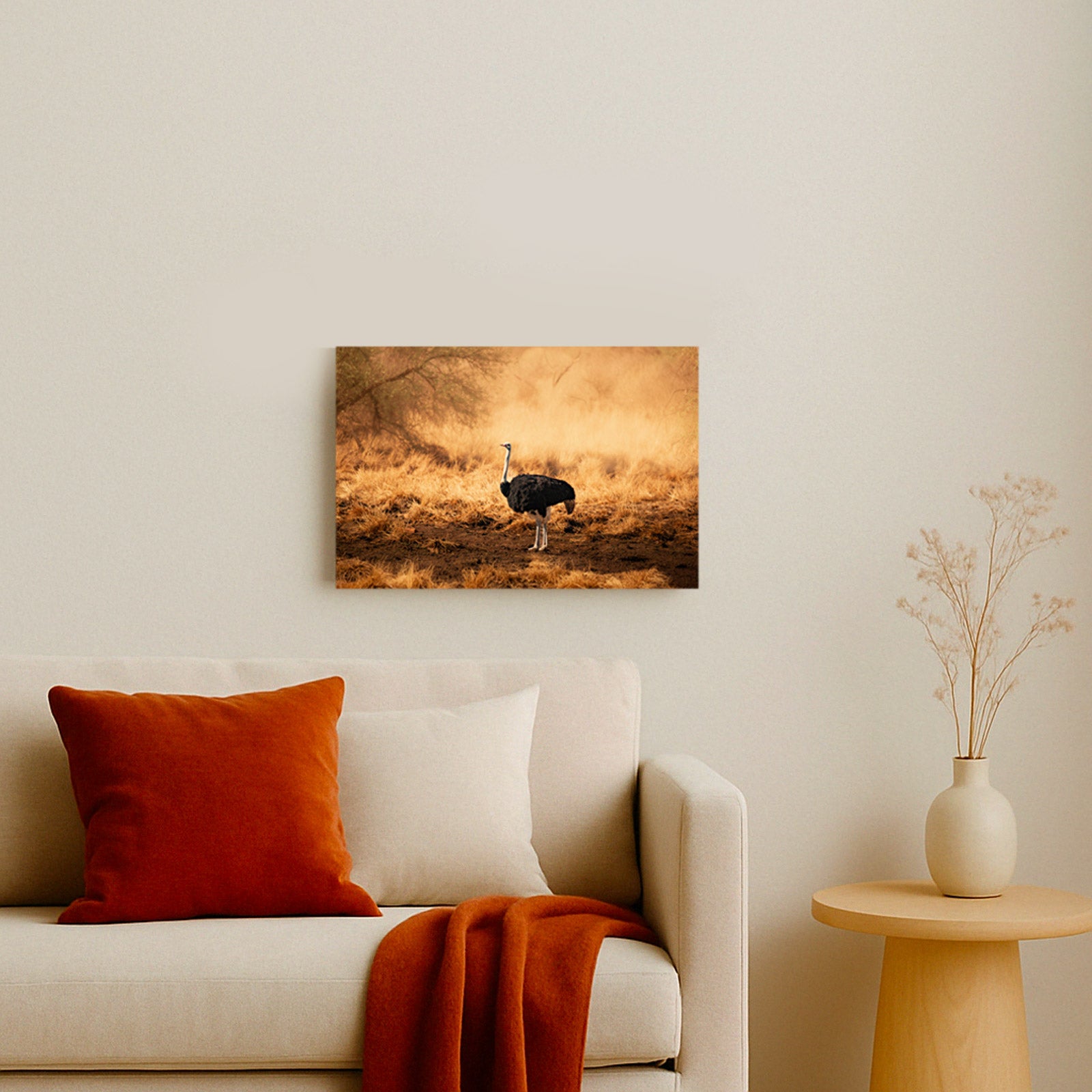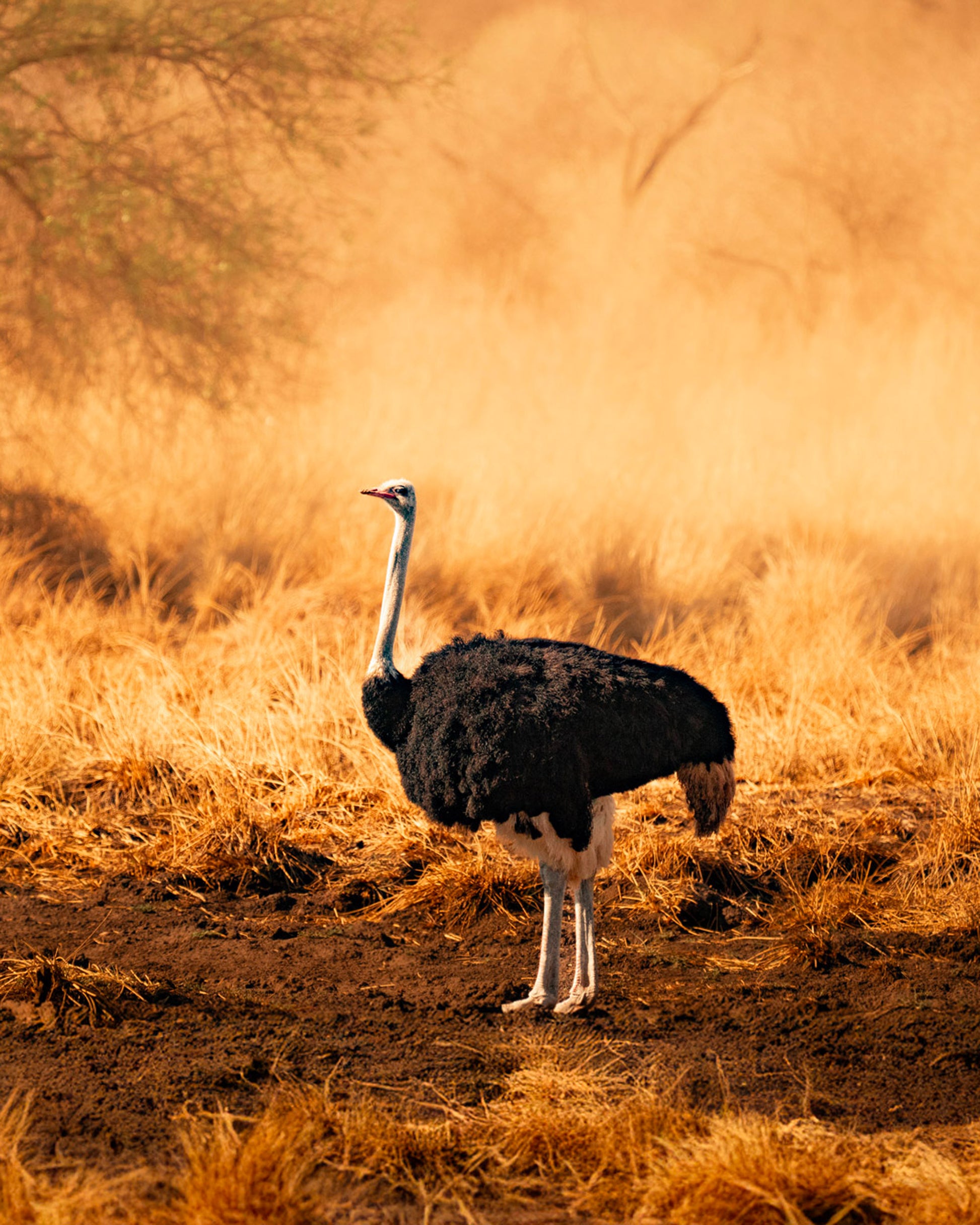 That morning on safari, it felt like the entire savannah was holding its breath. We drove for hours and saw nothing—no movement, no calls, just an eerie stillness across the landscape. The weather was gentle, yet the bush remained silent. As we reached the edge of the reserve, almost as if summoned from the stillness itself, a lone male ostrich appeared—standing tall, proud, and completely alone. It was a piercing moment of presence in an otherwise quiet day, and I knew I had to capture it.